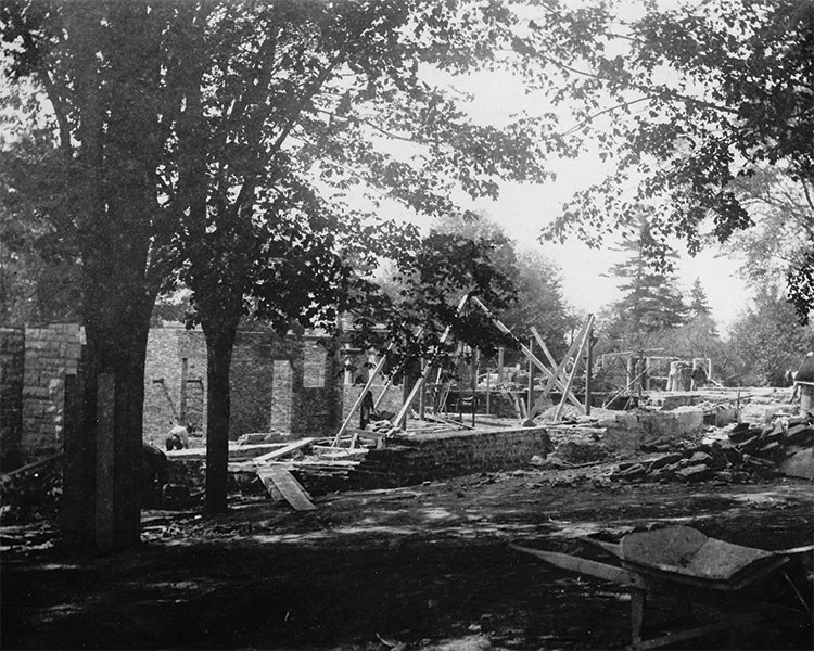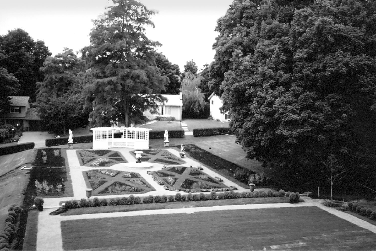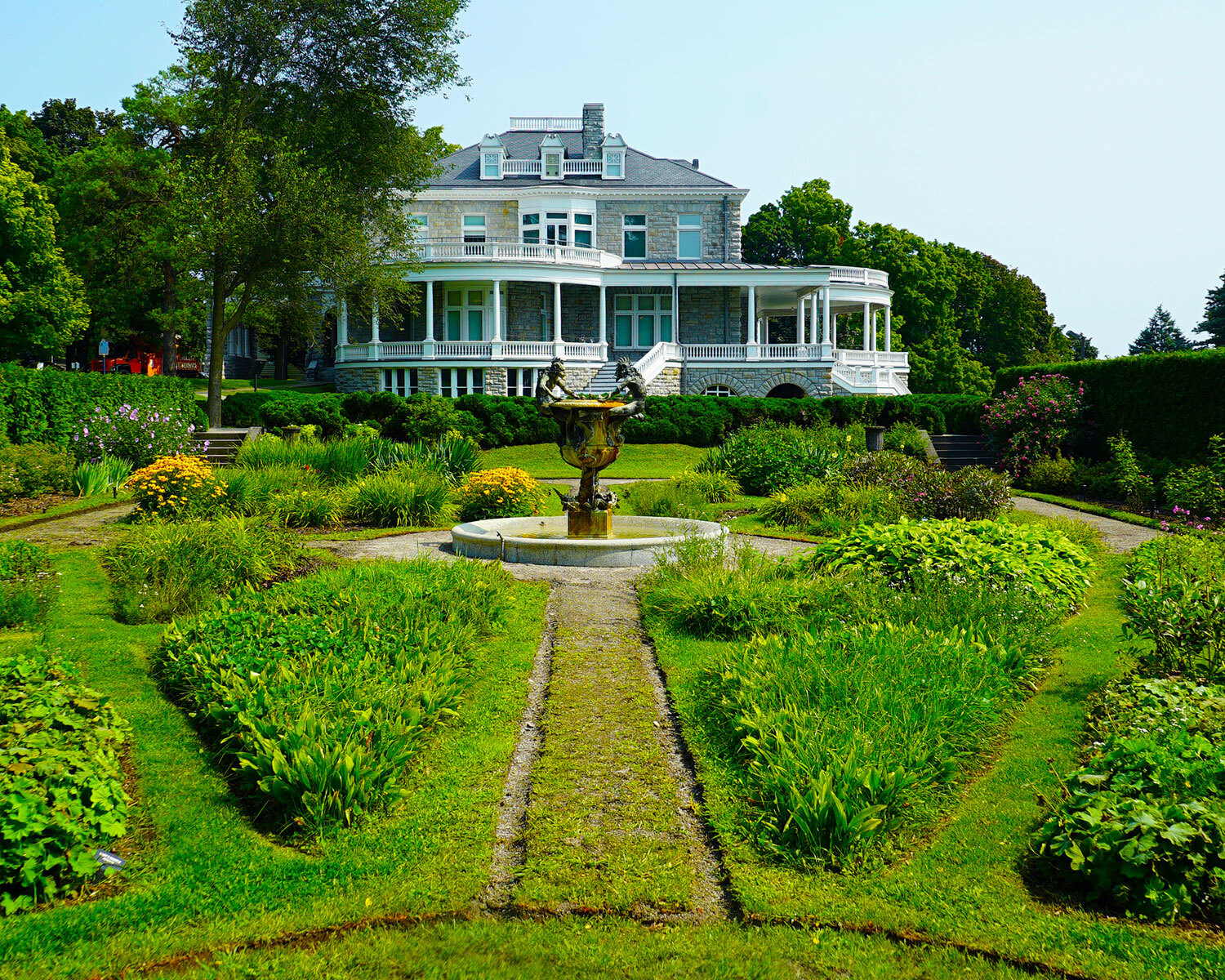 George Fulford was fond of the formal Italian-style garden, whereas Mary Fulford was more partial to wild English gardens. To please them both, the Olmsteds added both types of garden to the estate. In the early 1960s, however, the property was subdivided and only about one hectare (2.5 acres) remained with the mansion. While the rose garden was lost, the outlines of the Italianate garden survived. This garden — with its original architectural features — were restored in 2002.
