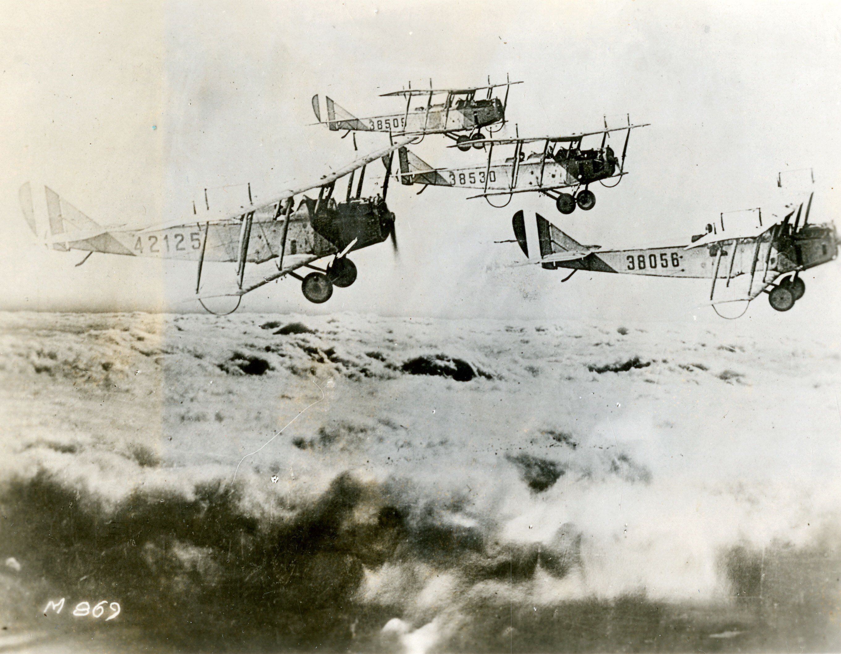 Curtiss J.N. 4-D au-dessus des nuages. Ces avions JN-4, souvent appelés « Jenny », étaient produits par le fabricant américain Curtiss Aeroplanes and Motors Ltd. La Commission impériale des munitions a acheté une petite usine auxiliaire à Toronto en 1915 afin d'augmenter la production en temps de guerre.