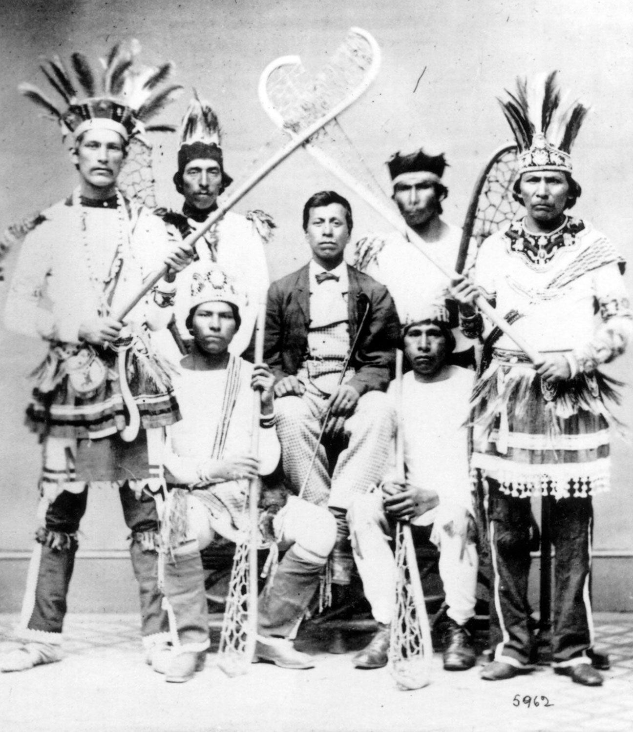 À cette époque, les membres des Premières Nations étaient souvent exclus des compétitions amateures parce qu’ils étaient automatiquement considérés comme étant des professionnels (soit des personnes qui tiraient profit de leur participation au monde sportif) et qu’ils faisaient l’objet d’hypothèses racistes sur leurs talents athlétiques naturels. Ces hypothèses étaient notamment répandues dans la discipline de la crosse. En 1880, par exemple, la National Amateur Lacrosse Association a interdit aux membres des Premières Nations de concourir dans des épreuves amateures. Mis à l’index de la structure sportive en développement, les membres des Premières Nations ont donc formé leurs propres équipes et ont organisé leurs propres championnats du monde indiens (Indian World Championships) (dans lesquels s’affrontaient principalement des équipes provenant de Kahnawake (Québec) et de St Regis (New York)). Ils se sont également mis plus tard au nouveau sport de la crosse en enclos. Plus de cent ans plus tard, en 1990, des membres des Six Nations de la rivière Grand ont fait leur retour dans la compétition en tant que nation indigène se faisant appeler les Iroquois Nationals. Ils s’étaient tournés vers leur culture et leurs ressources et avaient prospéré malgré les défis auxquels ils étaient confrontés.