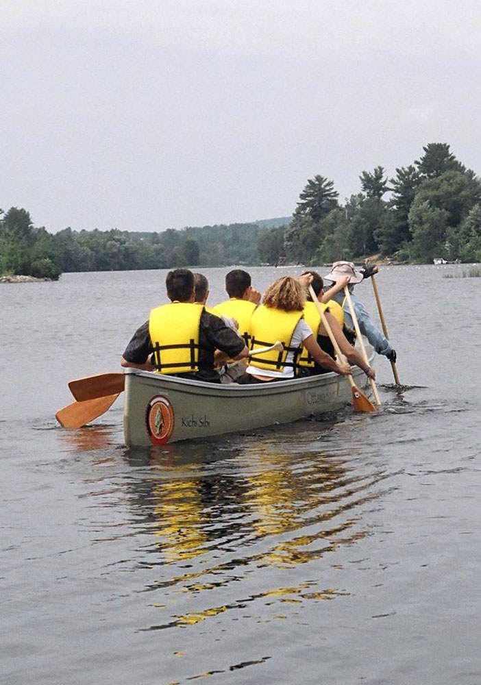 Photo : Pagayeurs lors d’une excursion organisée par l’Ottawa River Canoe Brigade (brigade des canots de la rivière des Outaouais). La brigade encourage les participants à découvrir le patrimoine de la rivière des Outaouais et à contribuer à sa sauvegarde. Photographie reproduite avec la permission de Larry Graham.