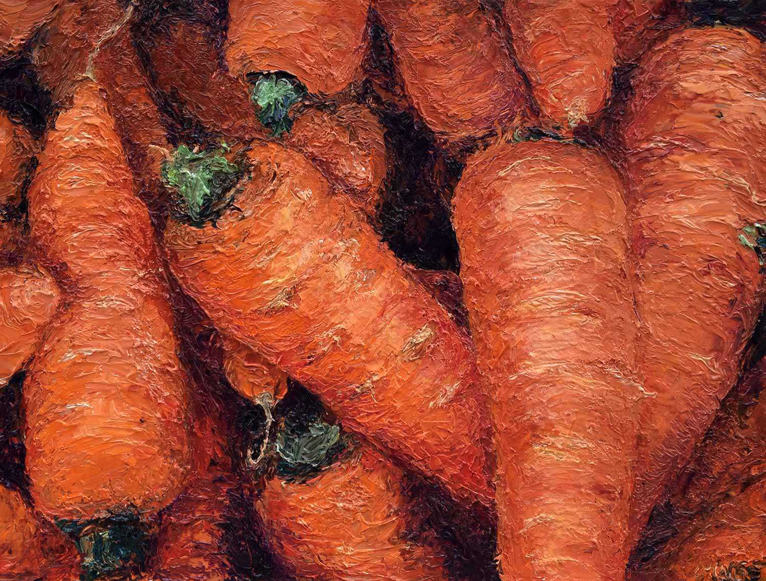 Les histoires que je raconte trouvent un écho dans mon travail d’artiste : j’utilise souvent des photographies de la ferme pour m’en inspirer et comme modèles pour mes tableaux, car un tableau reflète mieux les sensations de la ferme que ne le ferait une photographie.