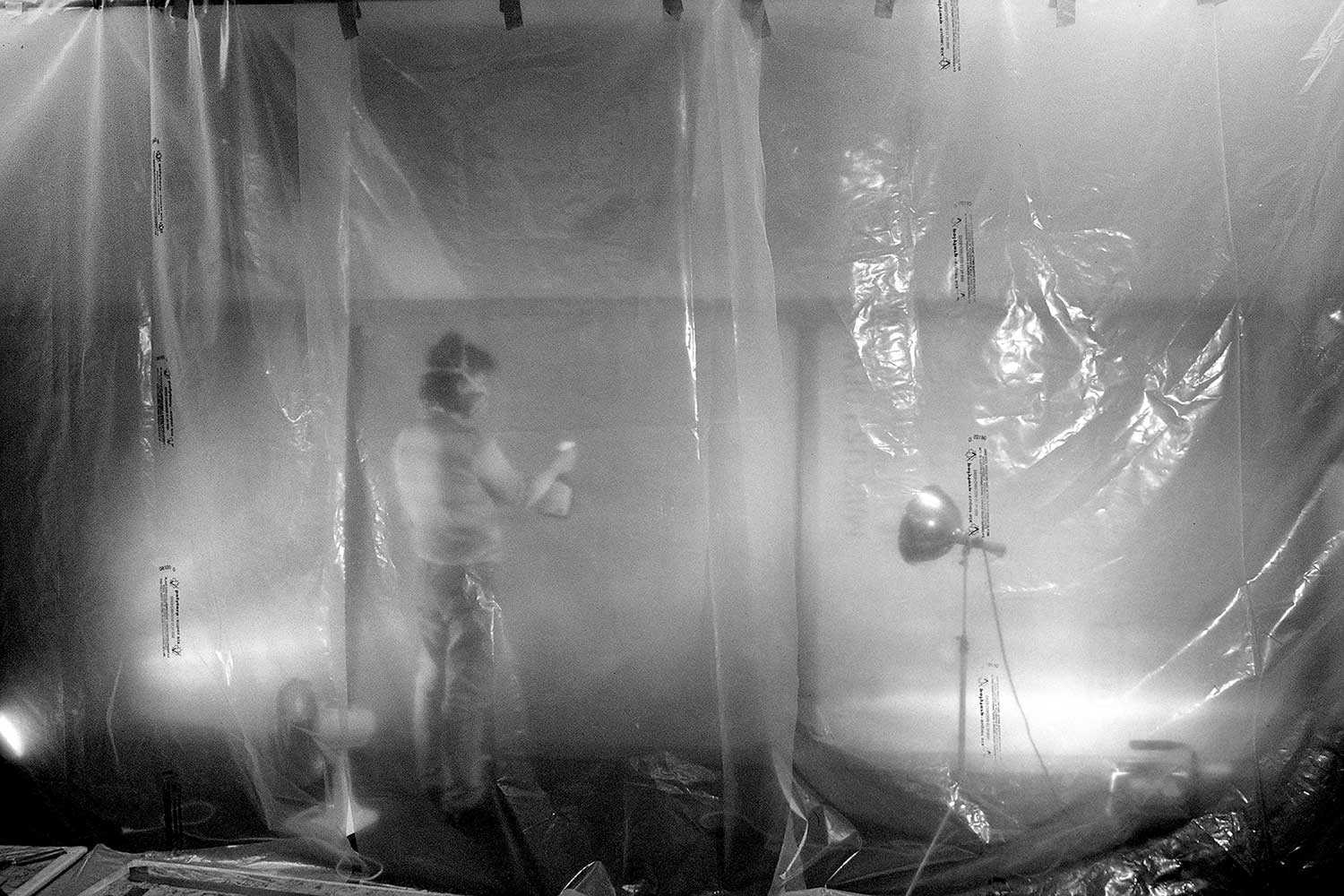 Les châssis ont d’abord été méticuleusement examinés pour en apprendre davantage sur la peinture, les tissus et les méthodes de travail de l’artiste. La couche de peinture et le fin tissu la supportant étaient si fragiles que la moindre application d’humidité ou de solvant en aurait modifié l’aspect. Différentes méthodes compliquées et divers produits ont été utilisés pour stabiliser la peinture. Chacun des 99 accrocs de la toile a dû être prétraité avant de pouvoir être retissé. Il a fallu soutenir la toile détendue pour empêcher la peinture de tomber, mais elle a été préalablement traitée dans une chambre de déshumidification pour réduire ses cloques et ses ondulations. Tous les endroits où manquait de la peinture ont été remplis et teints pour correspondre à l’entourage original dans des couleurs qui étaient résistantes à la lumière, stables et réversibles – conformément aux principes de la conservation. Les châssis sont soutenus par l’arrière à l’aide de différents types de matériaux d’archives rigides ou souples.