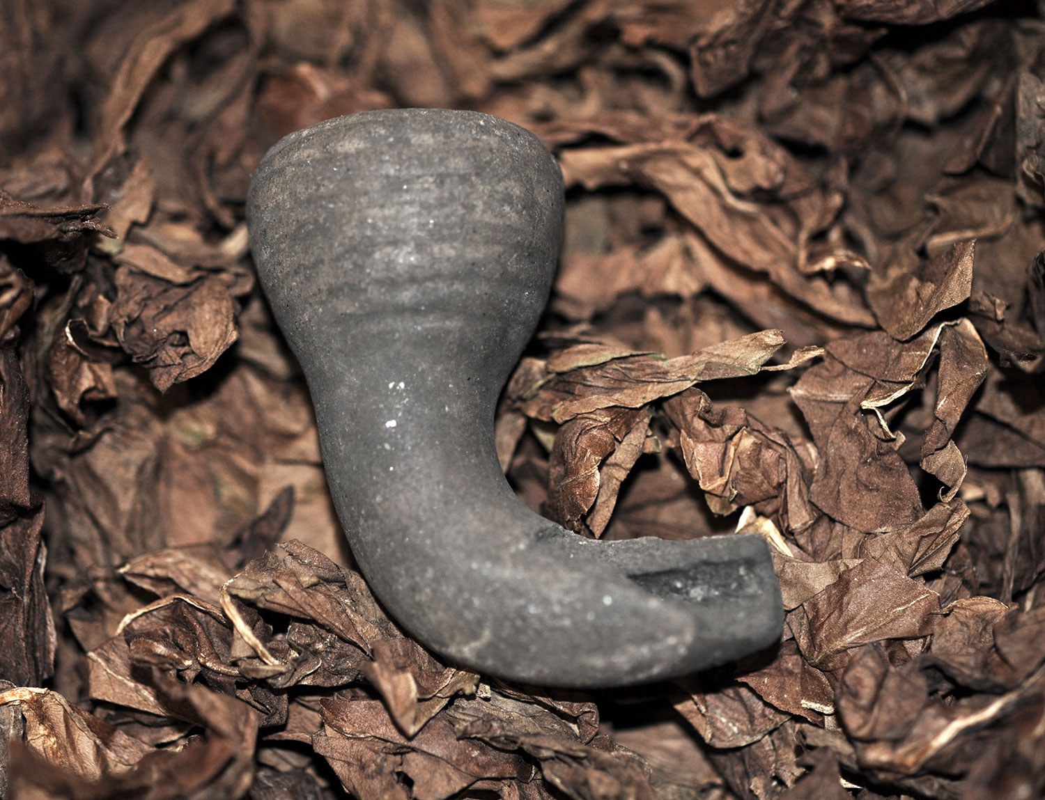 Les auteurs français ont rapporté que les Hurons fumaient pendant les débats du conseil sur les questions politiques. Ils fumaient également pendant les longs périples, afin de rester alertes et de tromper la faim. L’hypothèse générale veut que seuls les hommes fumaient la pipe, mais cela témoigne surtout du fait que les auteurs français du XVIIe siècle avaient peu de choses à dire sur les activités de la gent féminine huronne. À mon avis, les anciennes devaient également prendre plaisir à fumer la pipe, tout en résolvant les difficultés sociales du village. Dans ce cas, nous pouvons imaginer que le propriétaire a jeté sa pipe encore fumante, en signe de frustration ou de satisfaction au regard des accomplissements de sa journée.