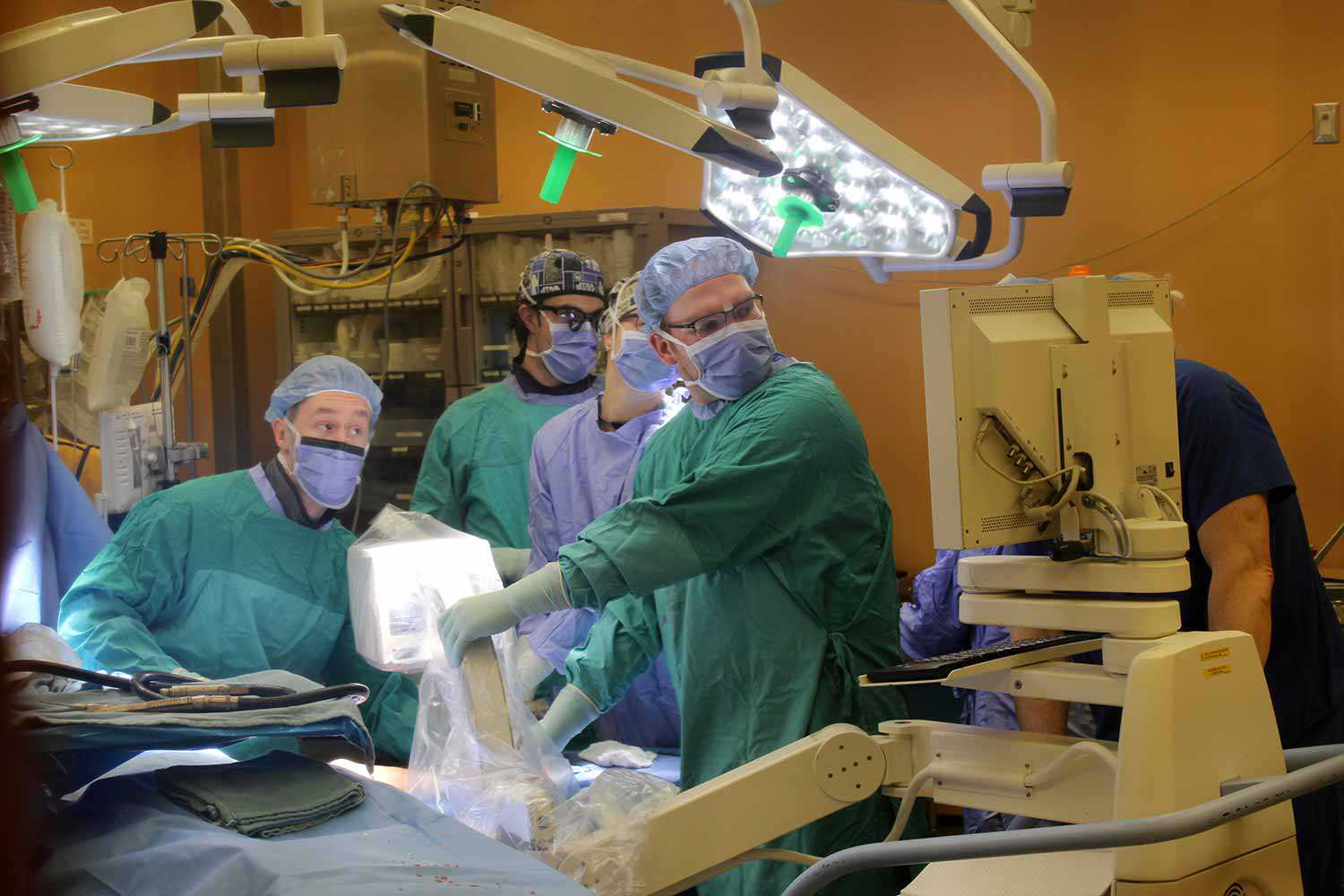 Photo : La première transplantation réussie d’une main au Canada s’est déroulée à l’Hôpital Toronto Western le 12 janvier 2016. Le DrChristian Veillette (à droite), chirurgien orthopédiste, a utilisé des rayons X pour vérifier le bon alignement entre le corps du patient et le bras du donneur lors de l’opération. Photo publiée avec l’aimable autorisation du Réseau universitaire de santé.