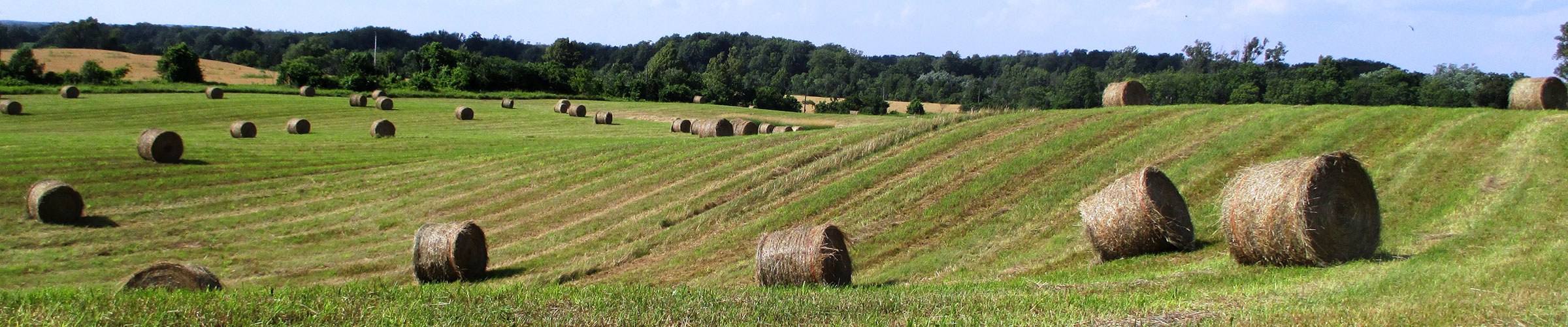 Photo : Vue panoramique des champs de foins à Scotsdale au moment de la récolte