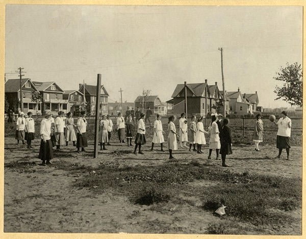 Photo : Volley-ball, v. 1914. Photo avec l’aimable autorisation des archives de la ville de Thunder Bay. Accession 1991-01-258
