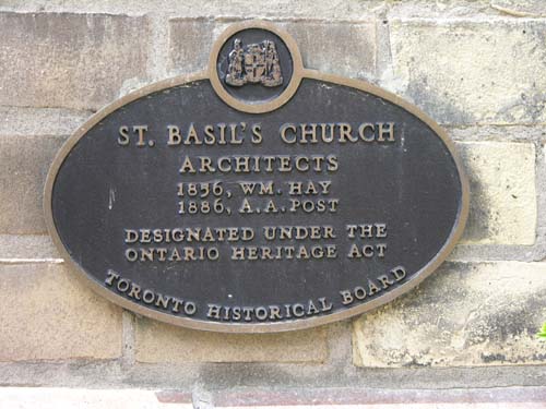 St. Basil's Roman Catholic Church, plaque provinciale de la Fiducie du patrimoine ontarien -