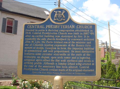 Central Presbyterian Church, plaque provinciale de la Fiducie du patrimoine ontarien -