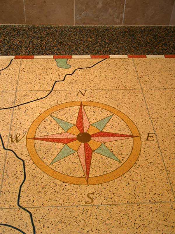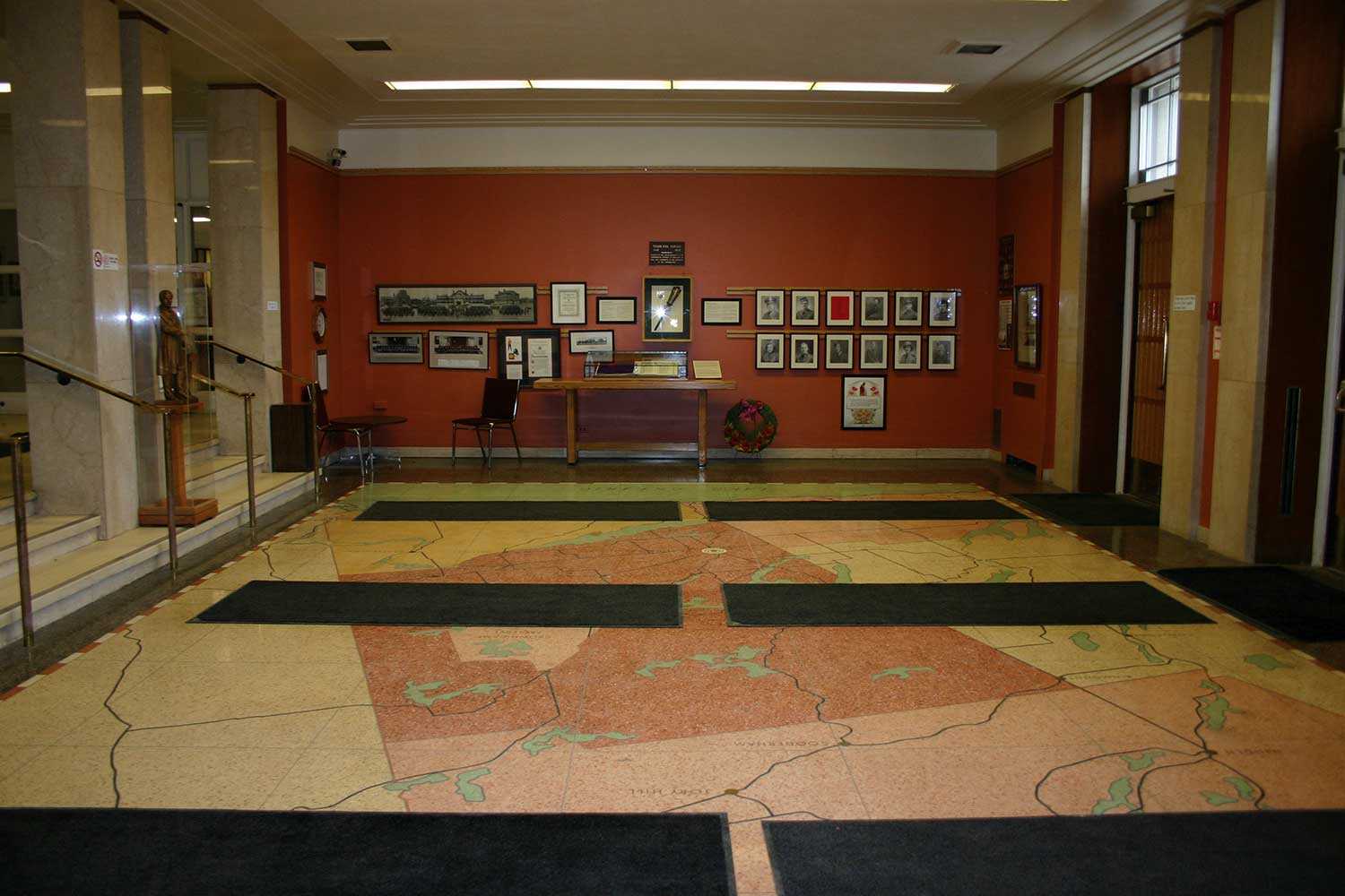 The City of Peterborough is known as the gateway to the Kawarthas (a word derived from the Anishinaabe “land of reflections” or “shining waters”) and the impressive terrazzo floor offers a glimpse of the many rivers, lakes and communities that surround the city and comprise the county’s 3,800 square kilometres.