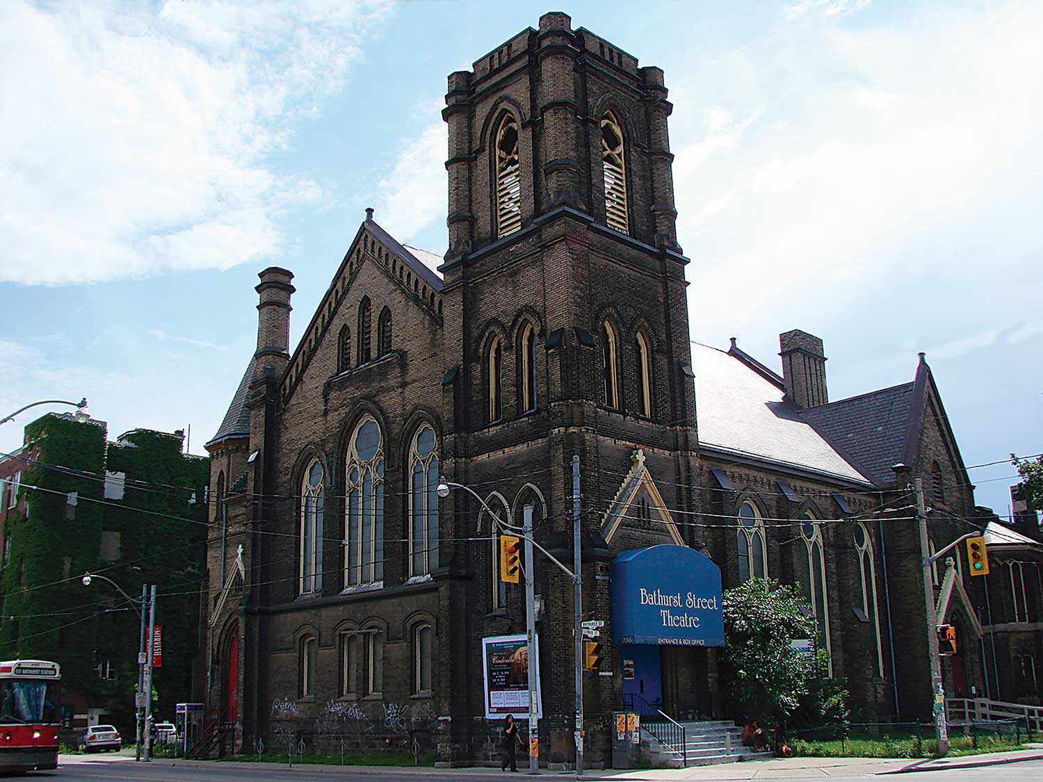 Photo: Toronto’s Bathurst Street Theatre was originally the Bathurst Street Wesleyan Methodist Church (later the Bathurst Street United Church), built in 1888. In 1985, the congregation no longer used the space and rented it to the theatre company. The Bathurst Street Theatre bought the building in 2002.