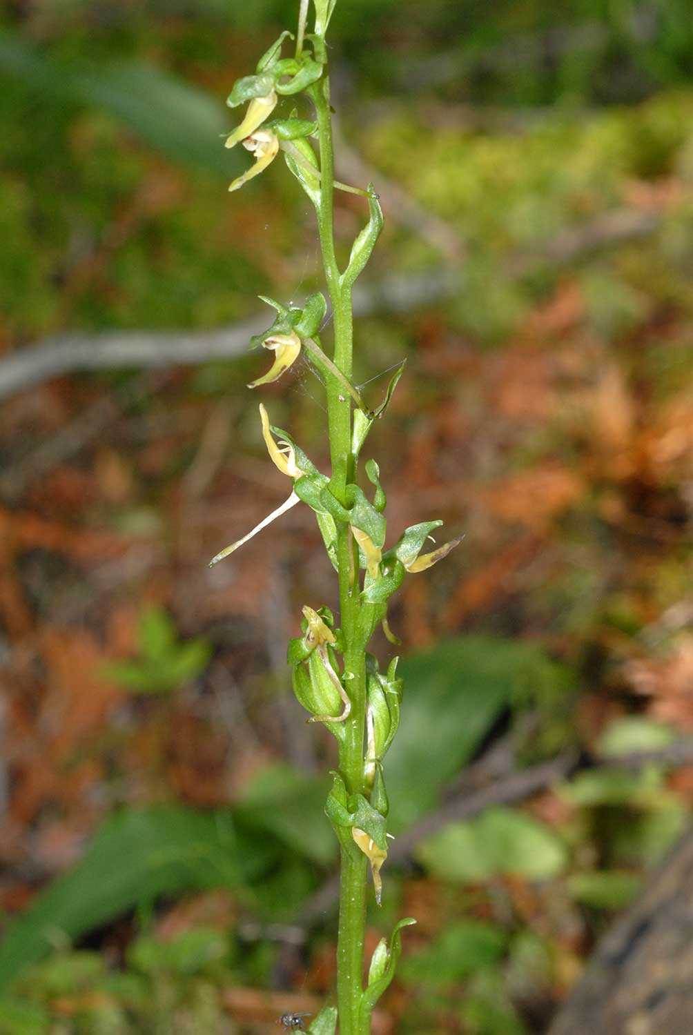 Hooker’s orchid (Platanthera hookeri), a regionally rare species, was discovered on the Trust’s Harvais property near Thunder Bay in 2010. The property, established as an orchid reserve in 1985, is also home to showy lady’s slipper orchids, among others. Hooker’s orchid is named for Sir William Jackson Hooker, a 19th-century director of London’s Kew Gardens. The species, listed as endangered in the United States, appears to have a low tolerance for acid rain, which may explain why its populations have declined drastically over the past 100 years. In the 1800s, when the flower was more abundant, its leaves were applied as a plaster on people suffering from weak lungs.