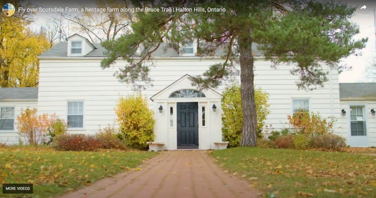 Fly over Scotsdale Farm, a heritage farm along the Bruce Trail, in Halton Hills.