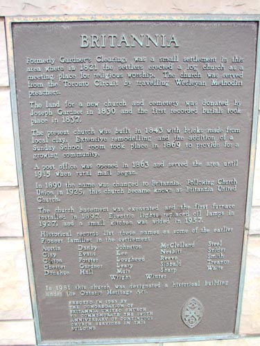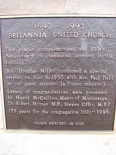5961 Hurontario Street (former Britannia United Church), plaque -