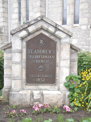 St. Andrew's Presbyterian Church, plaque -