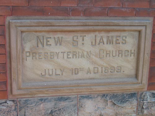 New St. James Presbyterian Church, date stone -