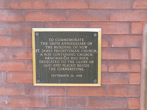 New St. James Presbyterian Church, plaque -