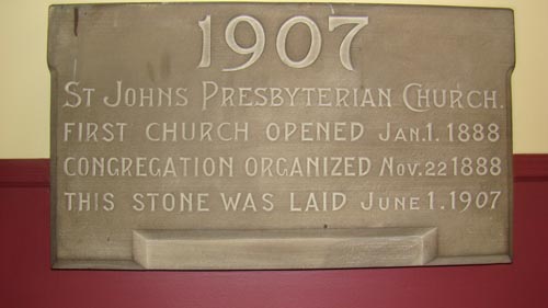 St. John's Presbyterian Church, date stone