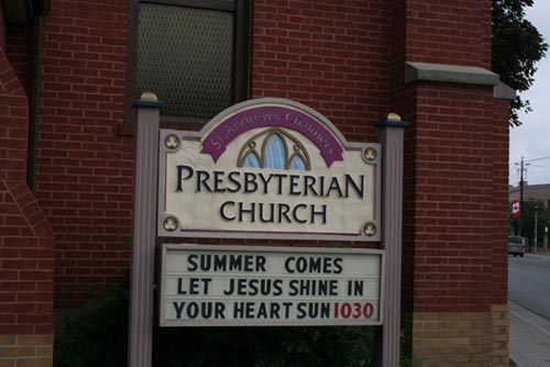 St. Andrew's-Chalmers Presbyterian Church, sign -