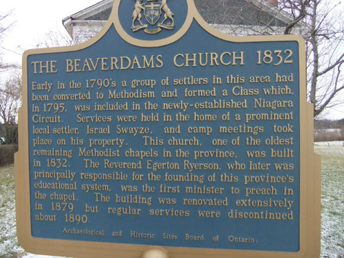Beaverdams Church, Ontario Heritage Trust plaque (Photo: School of Restoration Arts at Willowbank) -