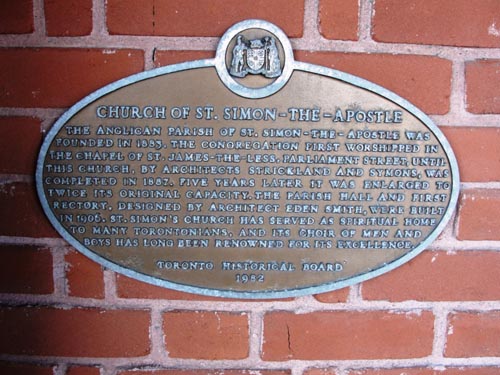 St. Simon the Apostle Anglican Church, plaque -