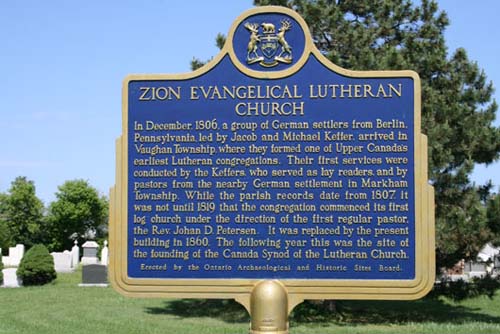 Zion Evangelical Lutheran Church, Ontario Heritage Trust provincial plaque