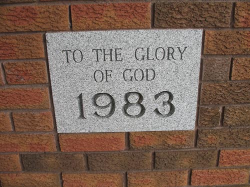 Shallow Lake United Church, date stone