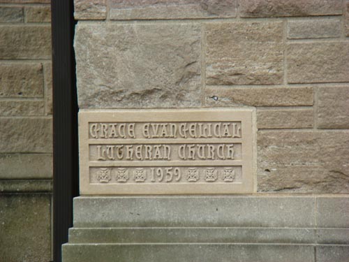 Grace Evangelical Lutheran Church, date stone -