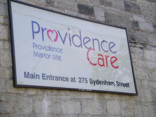 Our Mother of Sorrows Chapel / Providence Manor Home for the Aged, sign -