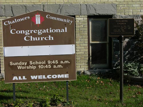 Chalmers Community Congregational Church, sign -