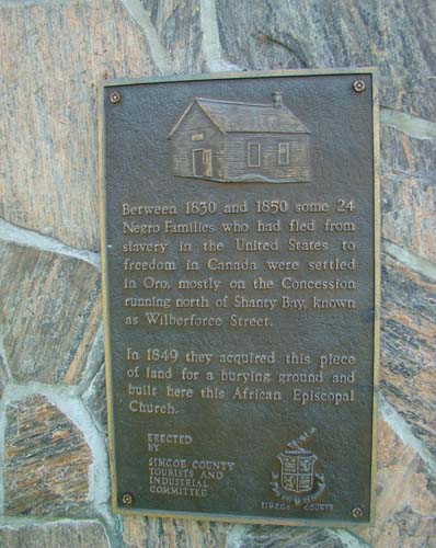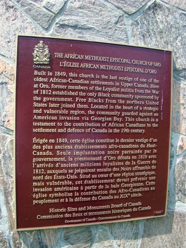 Oro African Methodist Episcopal Church, Historic Sites and Monuments Board of Canada plaque -