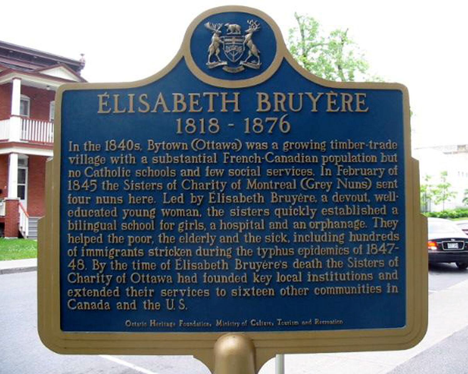 Provincial plaque commemorating Elisabeth Bruyère, Ottawa