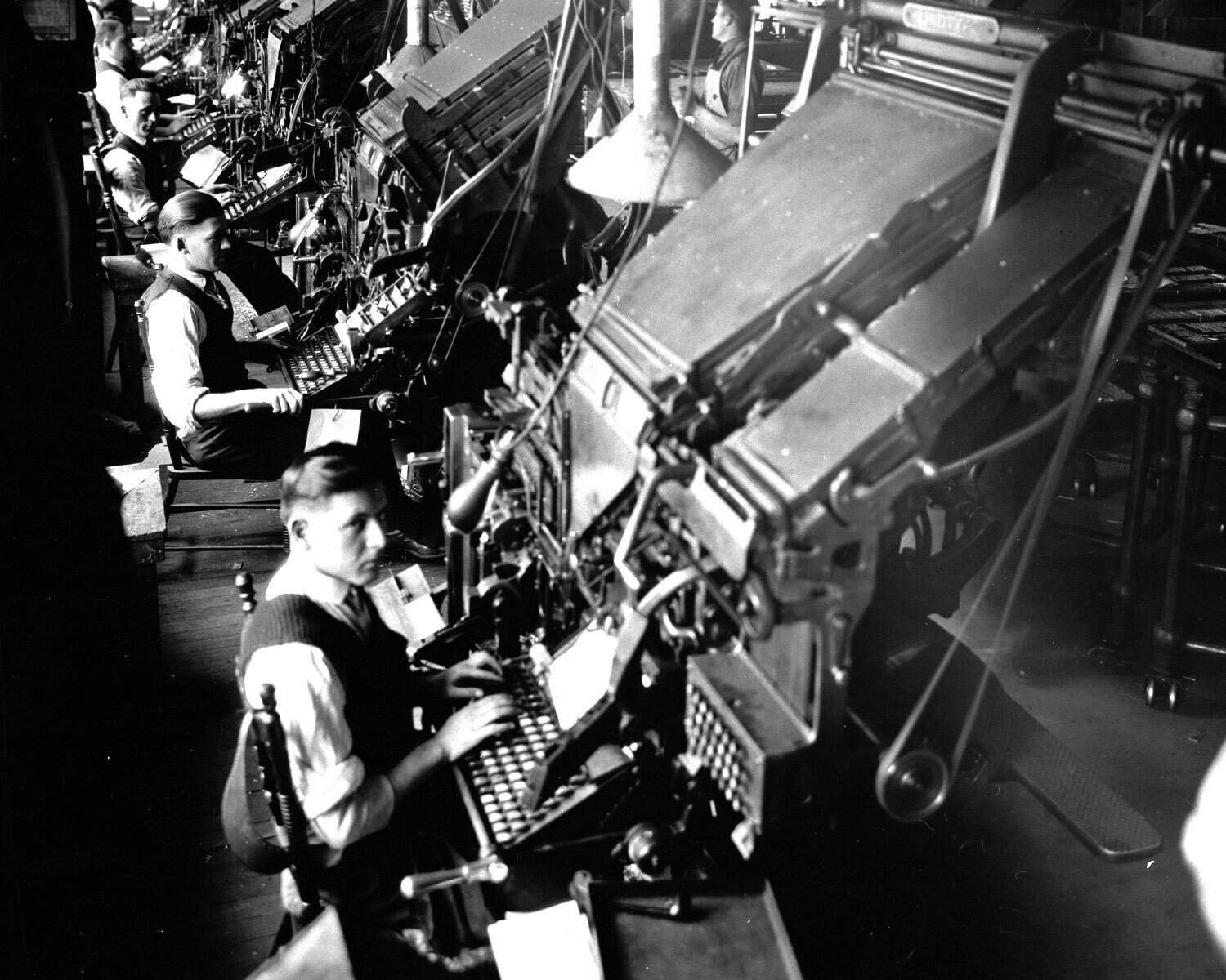 Linotype workshops at Le Droit newspaper, c. 1923, Ottawa